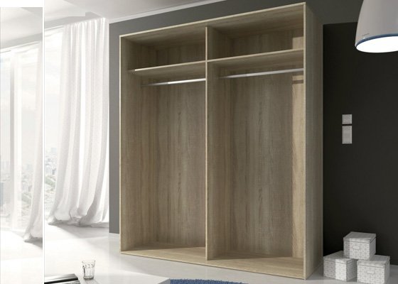 Armario ropero de dos puertas correderas de gran capacidad 208cm. Fabricado en melamiena de 16mm de alta presión y con herrajes de corredera de calidad. Sus acabados y herrajes le convierten en un producto duradero y de calidad. Se vende en kit de automontaje con instrucciones claras y precisas.